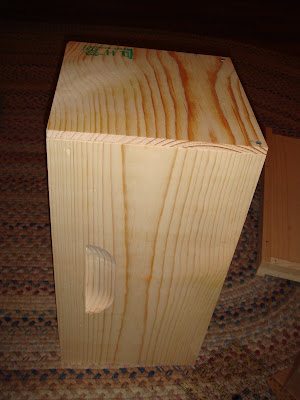 I managed to finish the nuc. It's not as perfect as the usual Dadant box, I'm sure because of my poor nailing ability, but it will do. I plan today to get flat-headed wood screws the length of the nails provided to screw the bottom to the nuc box (it is currently unconnected). If I were to take a box to collect a swarm, it would need to have a connected bottom. I am also going to set up a deep with a screwed on bottom. Now that I am converting to medium boxes, I may as well use a leftover deep box for a good purpose, like my fantasy of collecting a swarm.