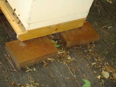 Then I noticed the concrete pavers that I was using to lift the hive off of the deck surface had changed color from gray to rusty brownish orange. Hmmmmm.