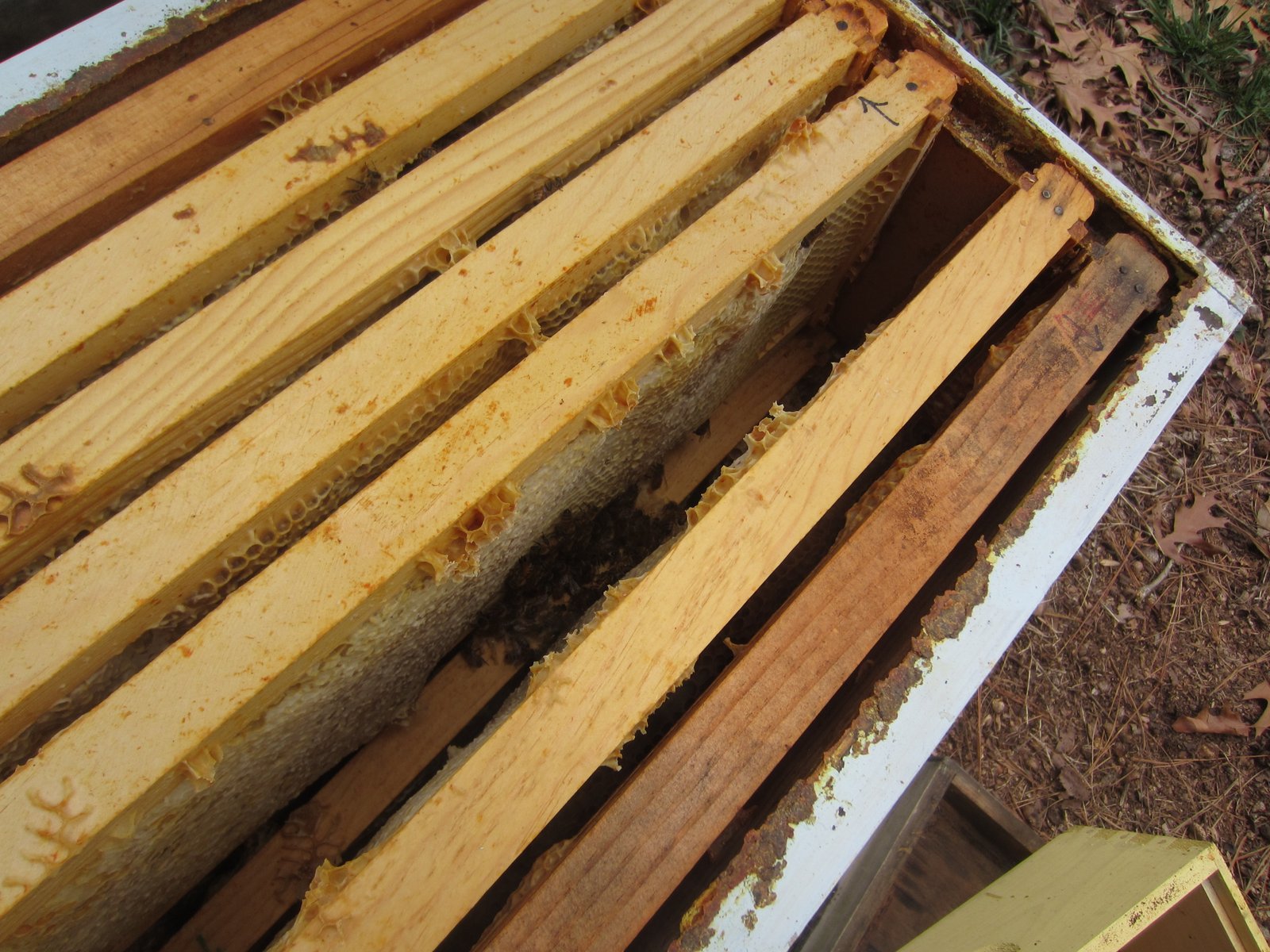 The hive is one of those English garden hives with the lovely rooftop. Here's how it looked before we moved it.
