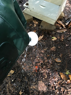 So I talked to Leslee and we decided to treat for small hive beetles by pouring beneficial nematodes on the ground around the hives. I actually planned to treat the entire hillside since the other two hives had failed from small hive beetle.