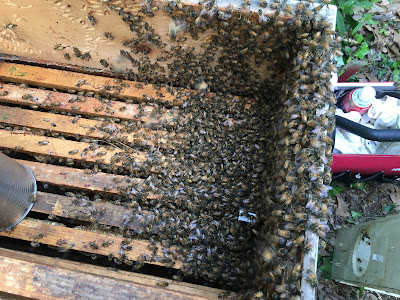 The bottom box, having sat on the ground for all of this time, is rotting and the seams are splitting. But I didn't have a box to replace it and decided to take care of that in the spring. I don't want to disturb the bees too much this late in the season.