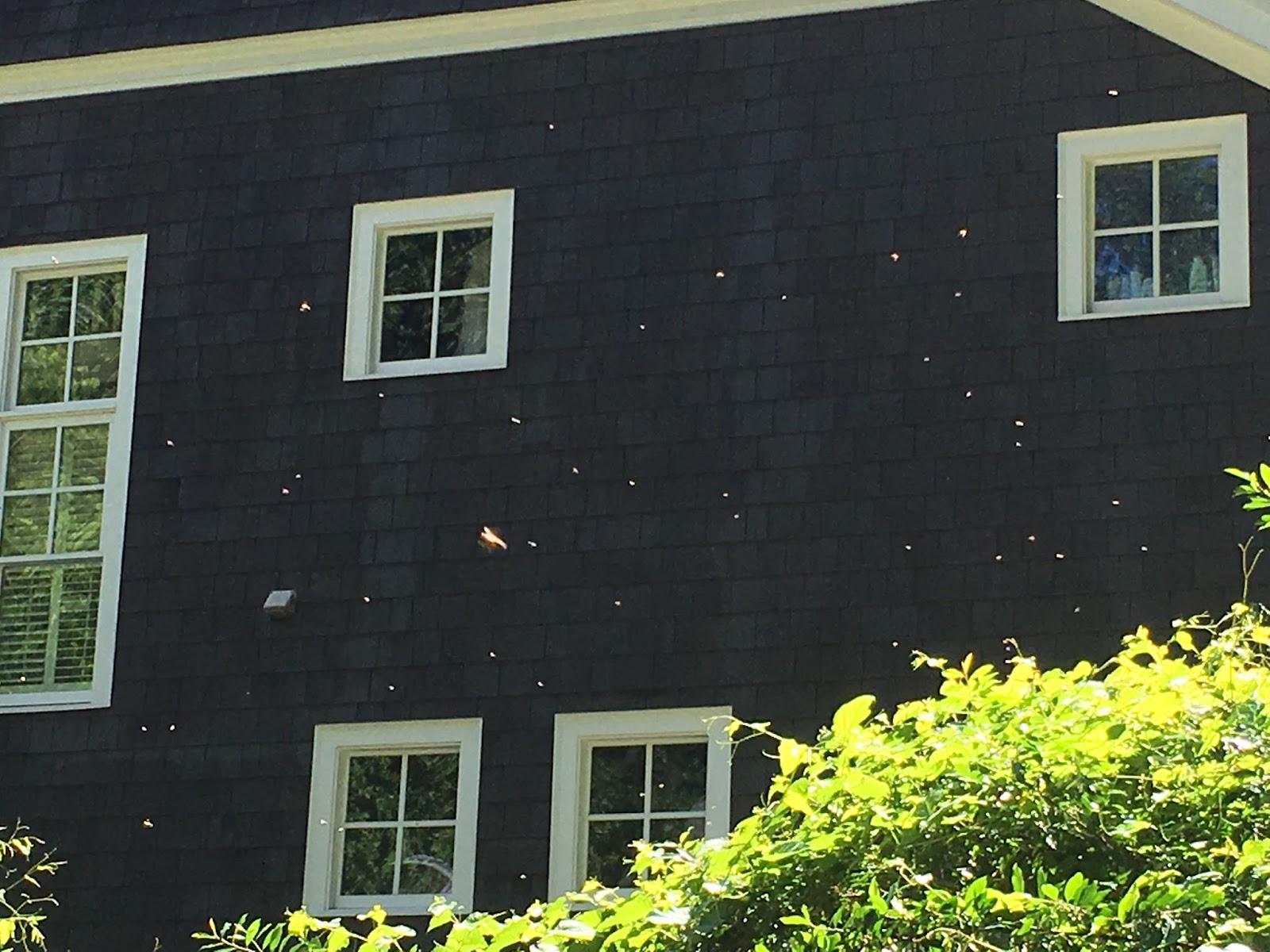 In the right of the above photo next to the school window, you can see what the hive was sitting on - I don't know what that stuff is - the end of a drain pipe and some other odd plastic device.