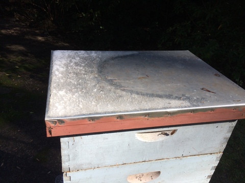 So I took the new box and set it on the upturned telescoping cover and the inner cover.