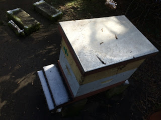 Again the snow and ice have melted - in a funny slanted pattern, but melted, nonetheless. So I assumed these bees were alive.
