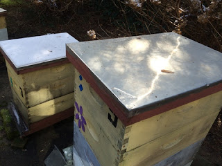 So all the hives that I thought were alive are indeed alive. Following Walt Wright's checkerboarding plan, I have been into the top of all of the hives in the last two weeks and attempted checkerboarding. I say attempted because I don't have lots of drawn comb and because some of the honey domes in my hives included honey joined to honey in the next frame so lifting one of those frames would cause a mess of dripping honey in the hive and I didn't want that. So in the eight frames, I moved at least three in each hive to an upper box and moved in drawn comb.